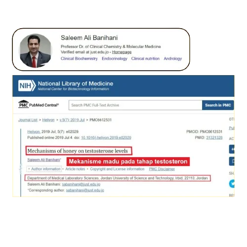 Hasil kajian Klinikal oleh Profesor Saleem Ali Banihani, pengambilan madu boleh meningkatkan hormon testosteron lelaki dengan meningkatnya hormone luteinizing di dalam badan secara semulajadi.