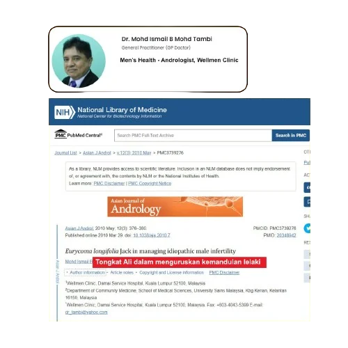 Menurut Kajian Dr Mohd Ismail Tambi, Tongkat Ali mampu meningkatkan kesuburan lelaki dengan meningkatkan kualiti sperma, kuantiti sperma lebih banyak & Pekat. Asbab itu ramai yang mendapat Zuriat