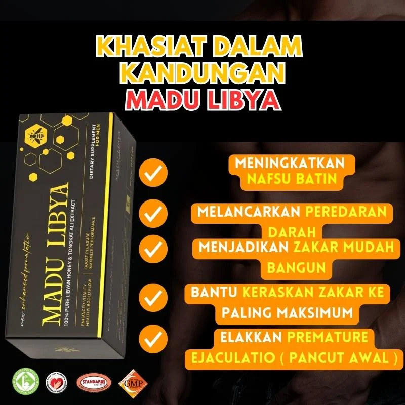 Dalam MaduLibya Mengandungi Nitrat Tinggi yang mampu mengaktifkan enzim guanosin monofosfat siklik (cGMP) di dalam badan yang membantu pembuluh darah di zakar melebar dan meningkatkan aliran darah Organ Kelamin