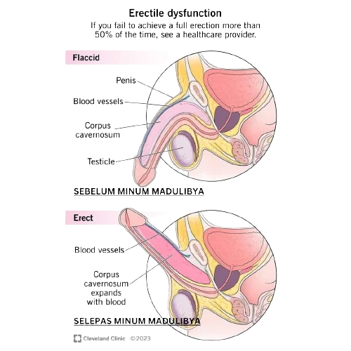 Ia akan menyebabkan zakar menjadi TEGANG dan KERAS. Ini dapat membantu meningkatkan keupayaan untuk mencapai dan mengekalkan ereksi yang cukup untuk aktiviti intim